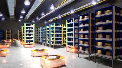 In a fully automated warehouse, warehouse robots do almost all the work with only a handful of staff involved in operations. An example of this is the Alibaba warehouse in Wixu, Shanghai.