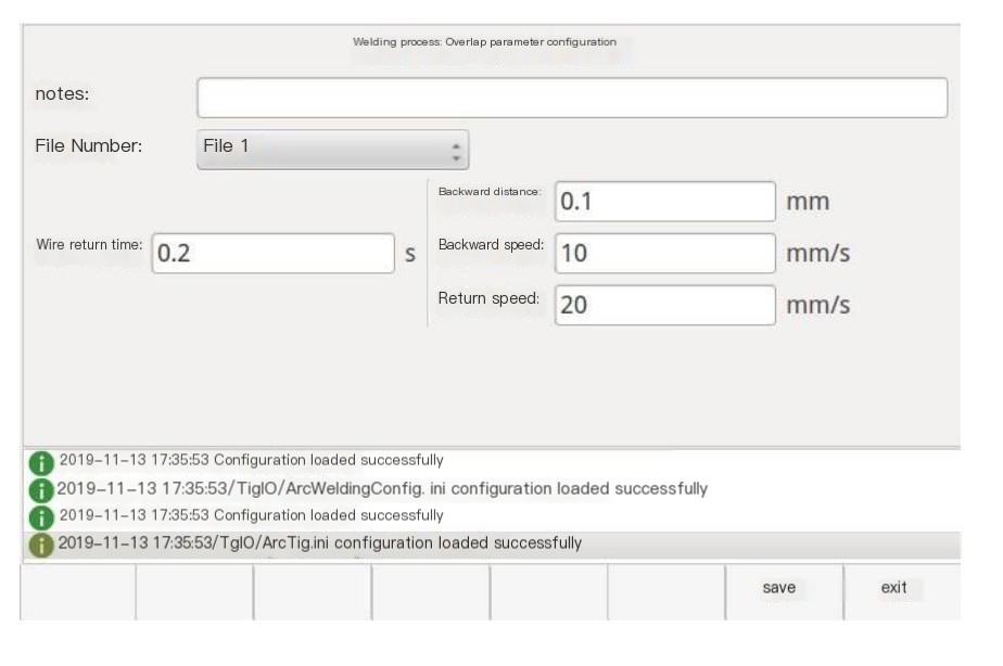During the welding process, if welding is interrupted by some factors, when the interruption program is executed again, the welding gun retreats a distance and restarts the arc before the pause position to overlap with the previous weld bead to achieve weld transition. The overlap condition is used to call the overlap parameter after the overlap function is turned on.
