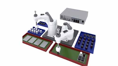 Dual-arm scara robots can be used as material handling robots alongside vision inspection procedures of FPC boards and similar items. It works as follows:
