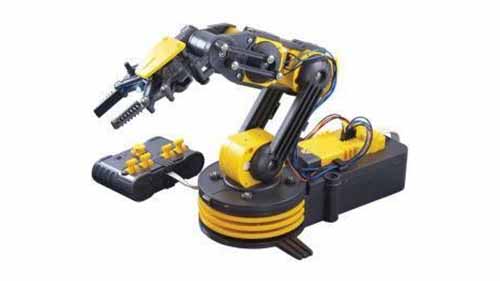 This is a robotic arm equipped with five joints controlled by a wired-5 switch controller that can be operated remotely. D batteries can power the robot at the same time it can be powered by AC power. It has a base rotation of 270° and has an extended life on the gearbox.