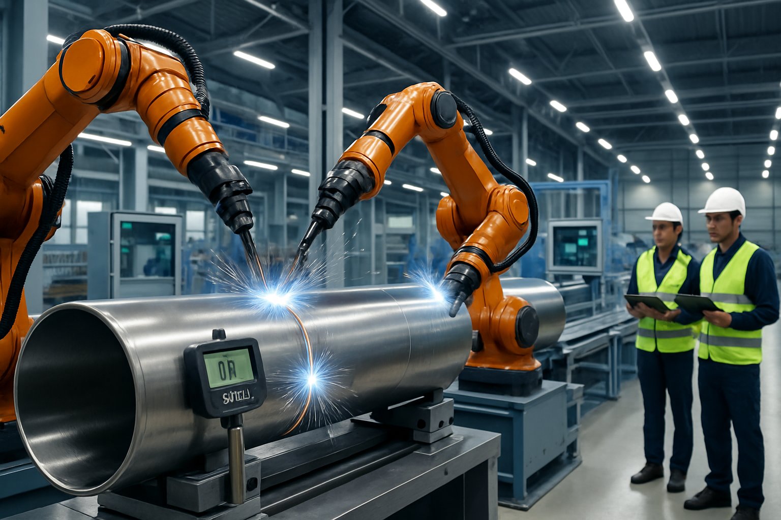Sensor-driven automation lets welding robots track and adjust their work in real time. Laser displacement sensors and machine vision cameras measure the tube’s straightness and joint gaps as welding progresses. This immediate feedback allows for dynamic correction of the welding path if misalignment is detected.