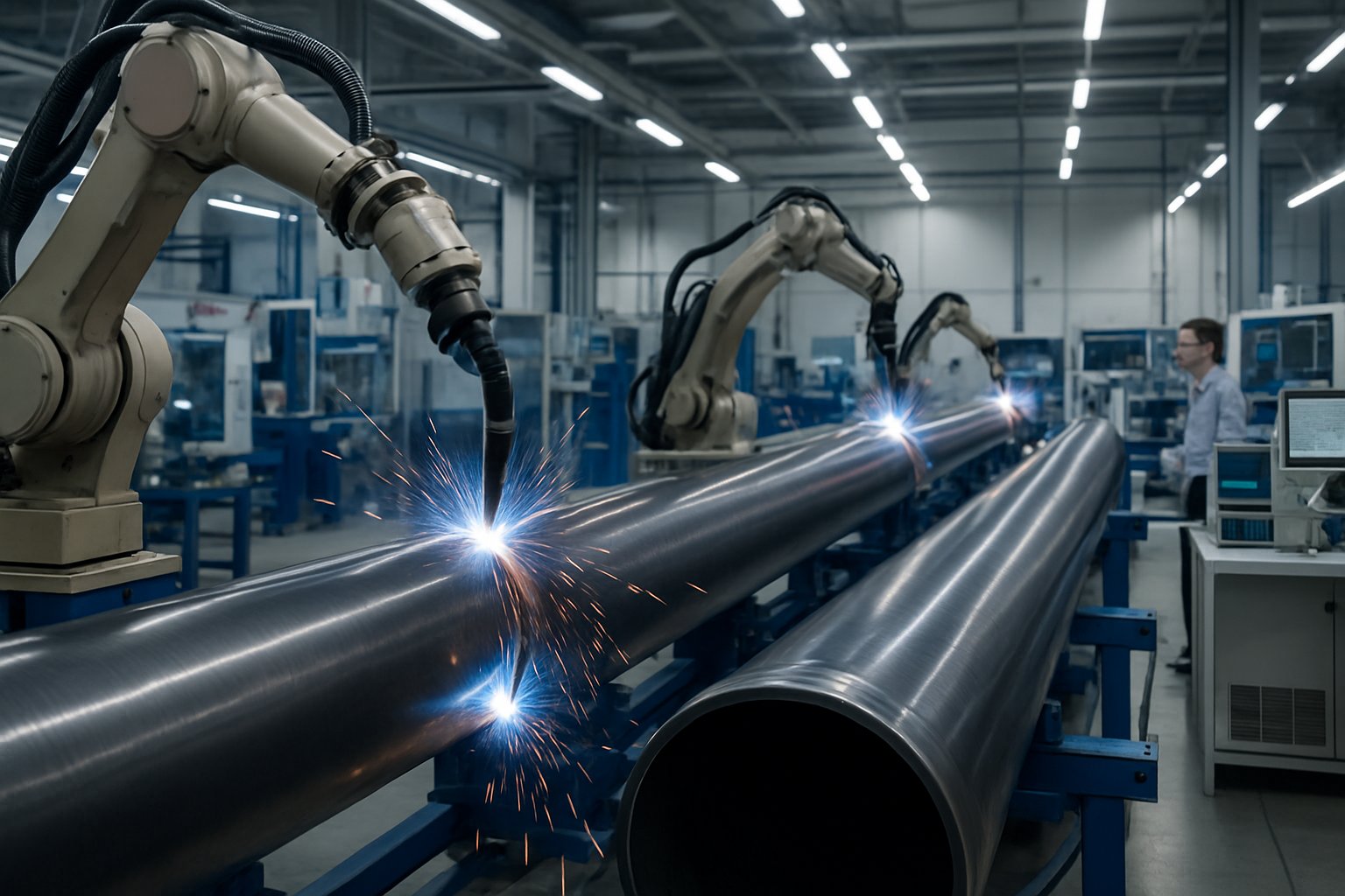 During welding, sensors feed data on temperature, position, and weld quality to a central control system. High-speed cameras inspect the weld seam, while laser scanners measure straightness as the process happens.